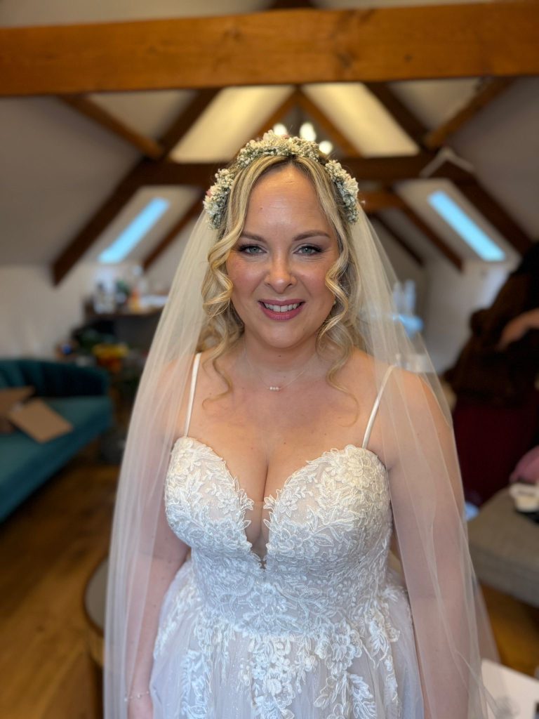 Kate, a First Class BA Honours makeup artistry degree graduate, prides herself on maintaining a high quality of work beyond her studies. As a skilled bridal hairstylist and makeup artist, Kate’s ethos is to enhance a person’s natural beauty through hair and makeup, fostering genuine confidence on their wedding day.